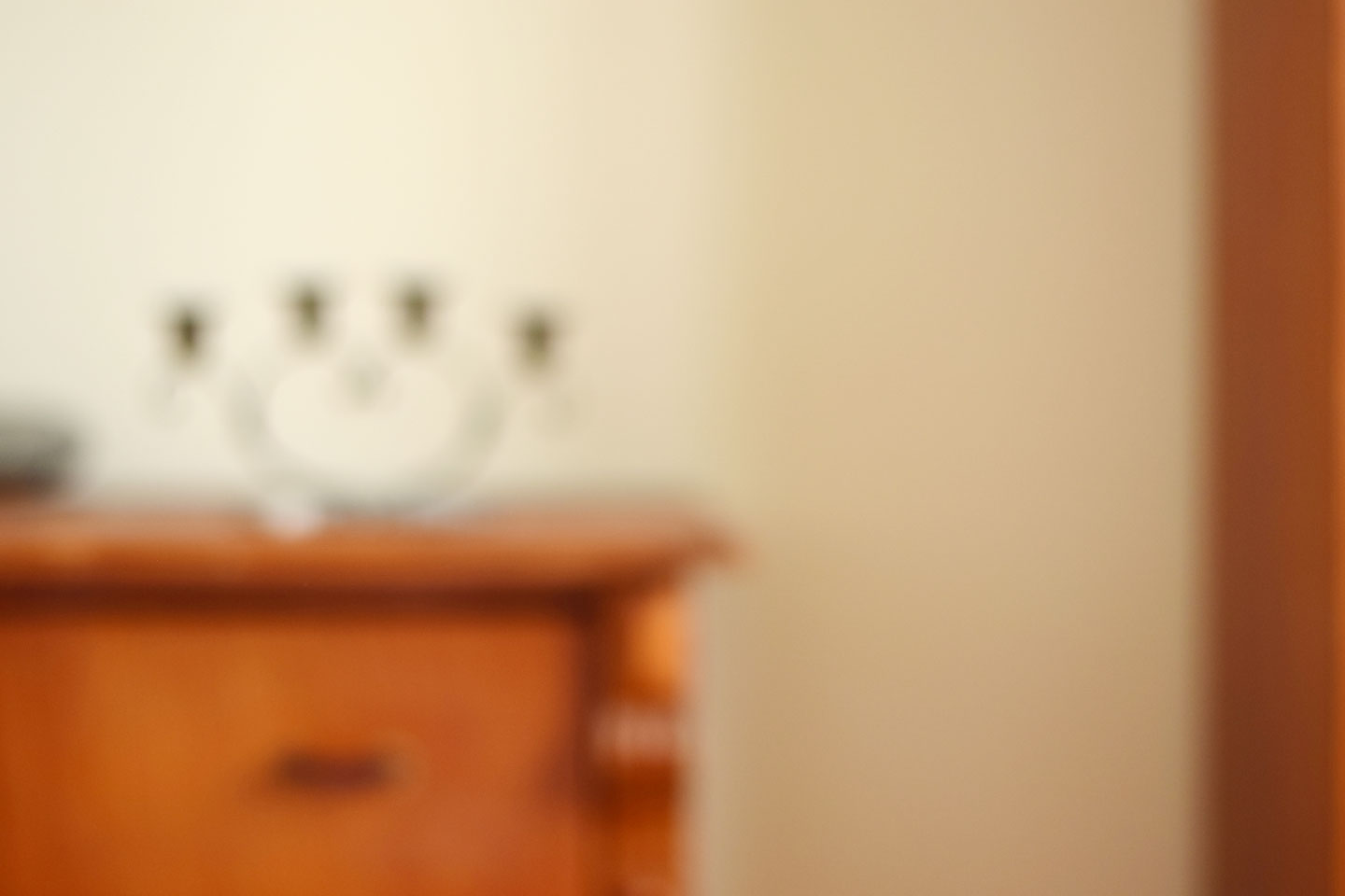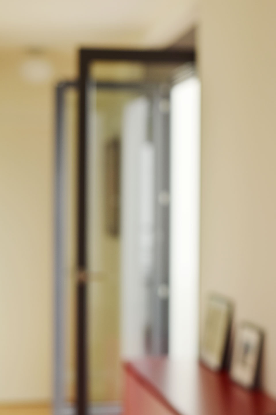Eine Reihe unscharfer Fotografien. Flur, Bett, Schrank, Bild … Eher Eindrücke als Ansichten, Andeutungen statt Botschaften, zwischen Materialität und Immaterialität, Gegenständlichkeit und Abstraktion. Was sehen wir, ahnen wir? Das Ganze anstelle von Details? Das Wesentliche, die Essenz, den Geist? Was bleibt? Traumbilder, Erinnerungsbilder.